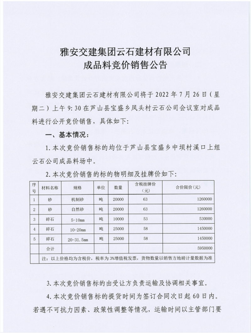 亿万先生MR集团云石建材有限公司成品料竞价销售公告